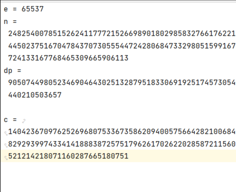 6.已知c ,e,n(非常大),和 dp,dq,求解明文m(领航杯2019的一道题:EasyRSA或2019山东省赛“深思杯”中 被加密的消息 一题,两者类似。):