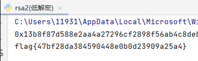 运行即可得到flag,这也是最常规的解密RSA的脚本结构。