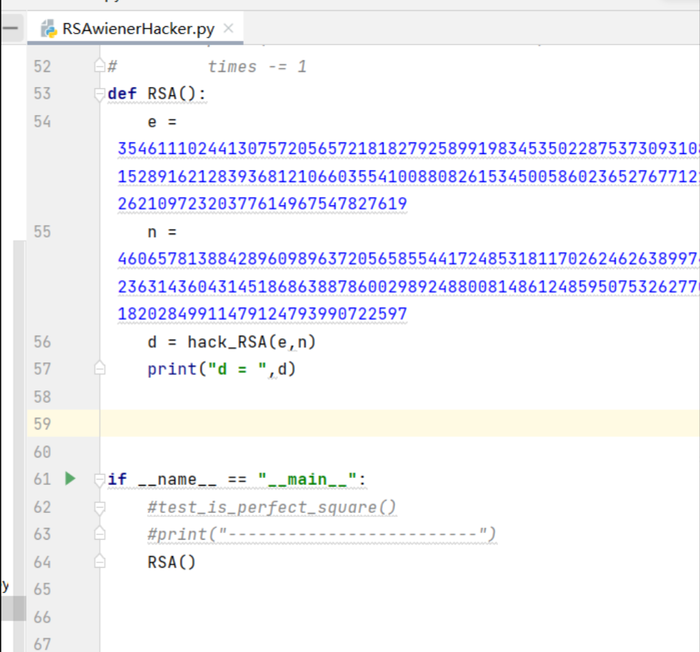 和低加密指数攻击相反,当e很大的时候我们怎么办呢,这里就要用到低解密指数攻击。当e很大时,相对的d就会很小。这里我们用到github上一个wienerHacker脚本pablocelayes/rsa-wiener-attack: A Python implementation of the Wiener attack on RSA public-key encryption scheme. (github.com)