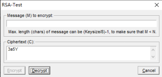 5.单击“Decrypt”按钮解密,看解密后的结果是否和所输入的一致,如果一致表示所生成的RSA密钥可用,否则需要重新生成。