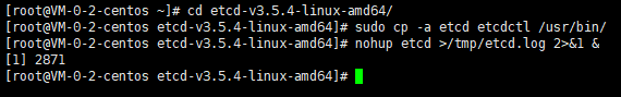 运行(nohup etcd >/tmp/etcd.log 2>&1 &)
