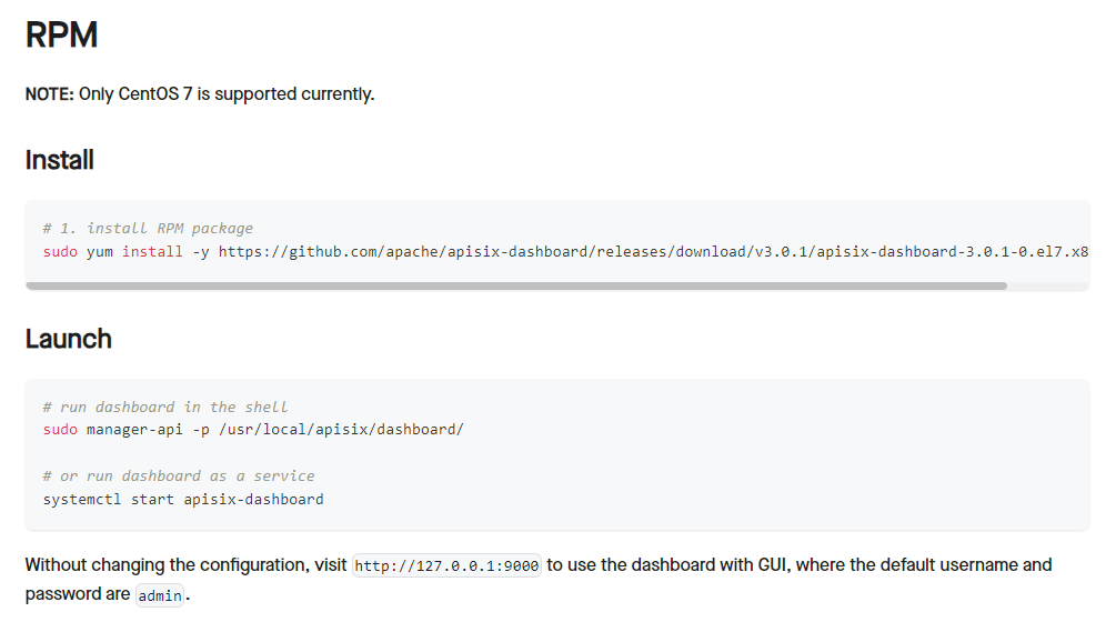直接本地安装(yum localinstall -y apisix-dashboard-3.0.1-0.el7.x86_64.rpm)