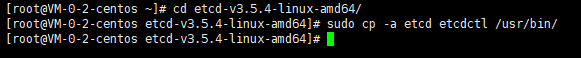 进入目录,复制执行文件(sudocp -a etcd etcdctl /usr/bin/)