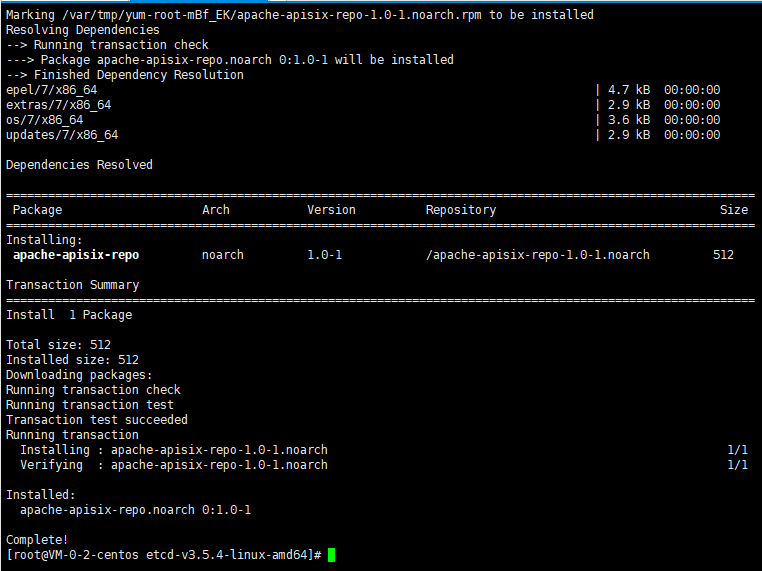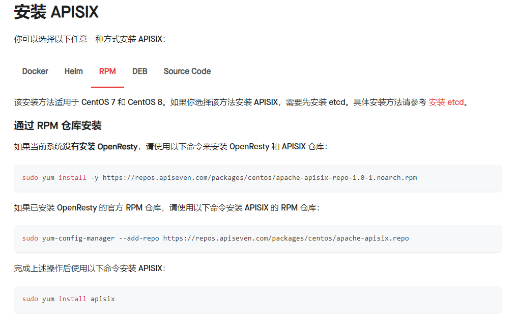 安装仓库(sudo yum install -y https://repos.apiseven.com/packages/centos/apache-apisix-repo-1.0-1.noarch.rpm)