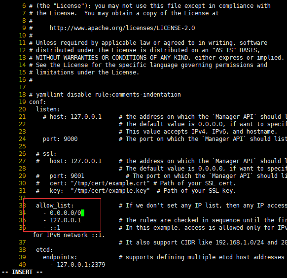 vi /usr/local/apisix/dashboard/conf/conf.yaml