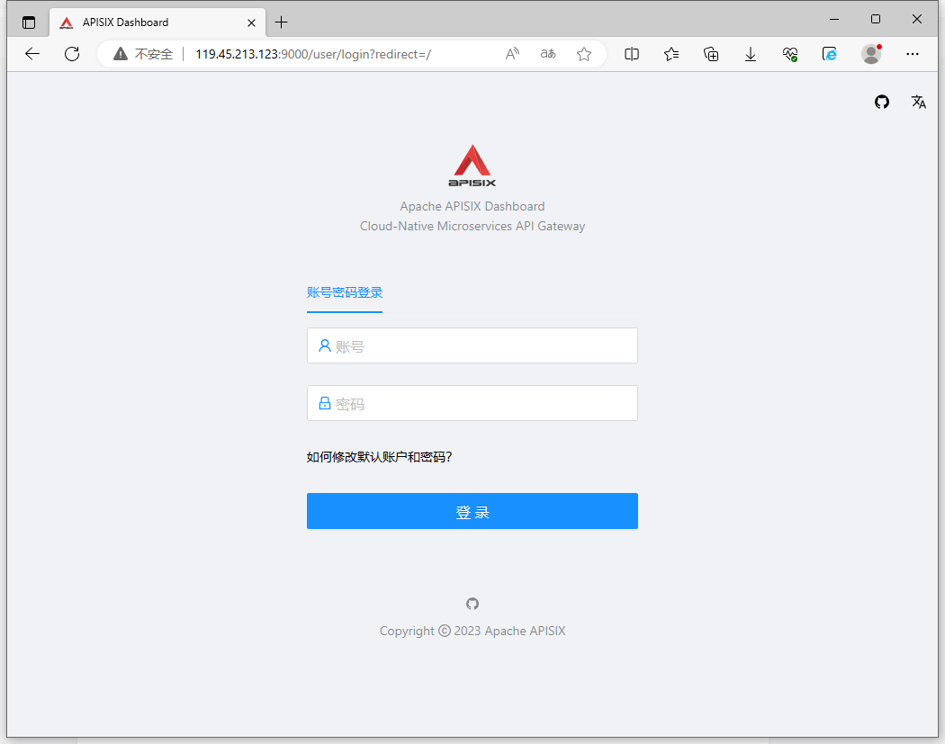 下面安装控制面板:Apache APISIX Dashboard https://apisix.apache.org/zh/docs/dashboard/install/![]()