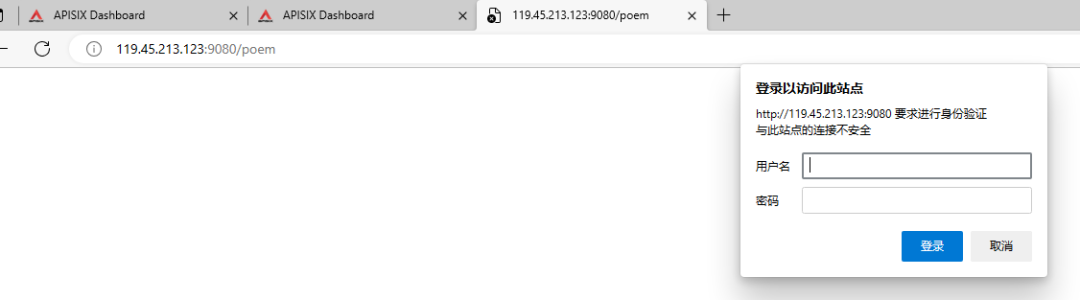 弹出401认证,说明配置正确了(默认apisix端口9080)