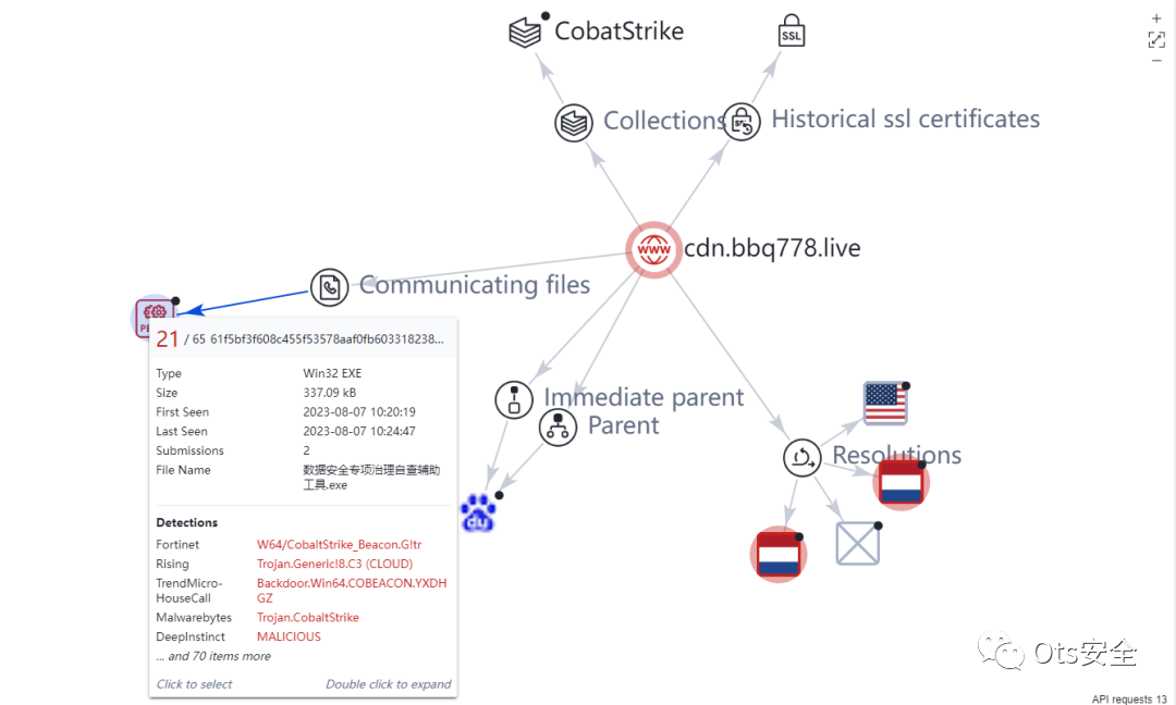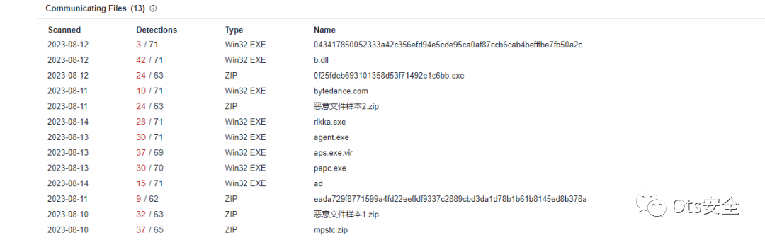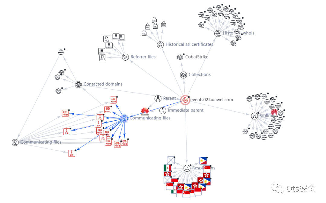 以字节跳动-刘*龙.ZIP详情可直接以解析域名进行查询最近活动和样本,可惜的是我并不能下载样本。解析域名:events02.huawei.com IP/域名:36.99.188.109