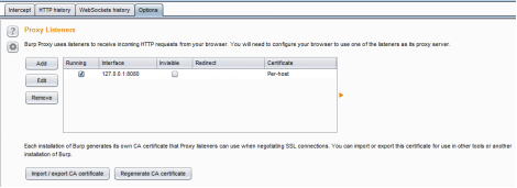 在日常工作中,最常用的Web客户端就是Web浏览器。可以通过设置代理信息,拦截Web浏览器的流量,并对经过Burp Suite代理的流量数据进行处理。Burp Suite运行后,Burp Proxy默认的本地代理端口为8080,如图3-21所示。
