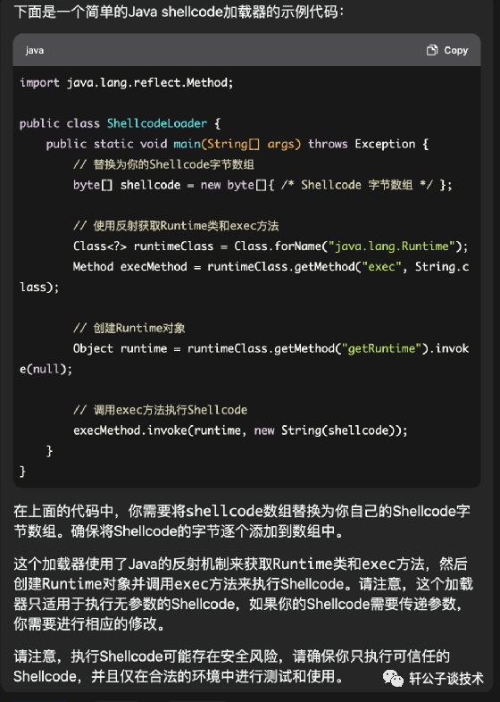 于是找gpt生成一个javashellcode加载器