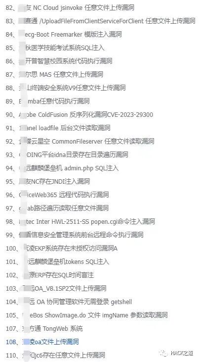 2023HW漏洞POC/EXP、情报汇总知识库(动态更新)飞书知识库访问地址:https://zkunu7syvm.feishu.cn/docx/JmKgddUcMo4Rt2xLys4c4lN2nbc
