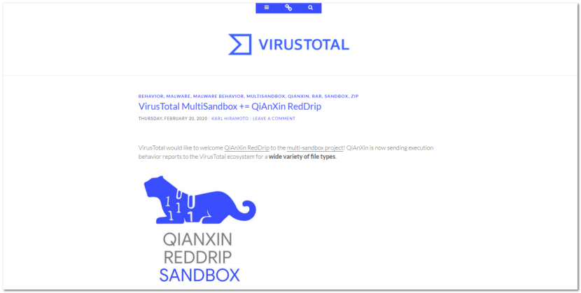威胁情报中心红雨滴云沙箱在两年多以前即被威胁分析厂商VirusTotal集成:https://blog.virustotal.com/2020/02/virustotal-multisandbox-qianxin-reddrip.html