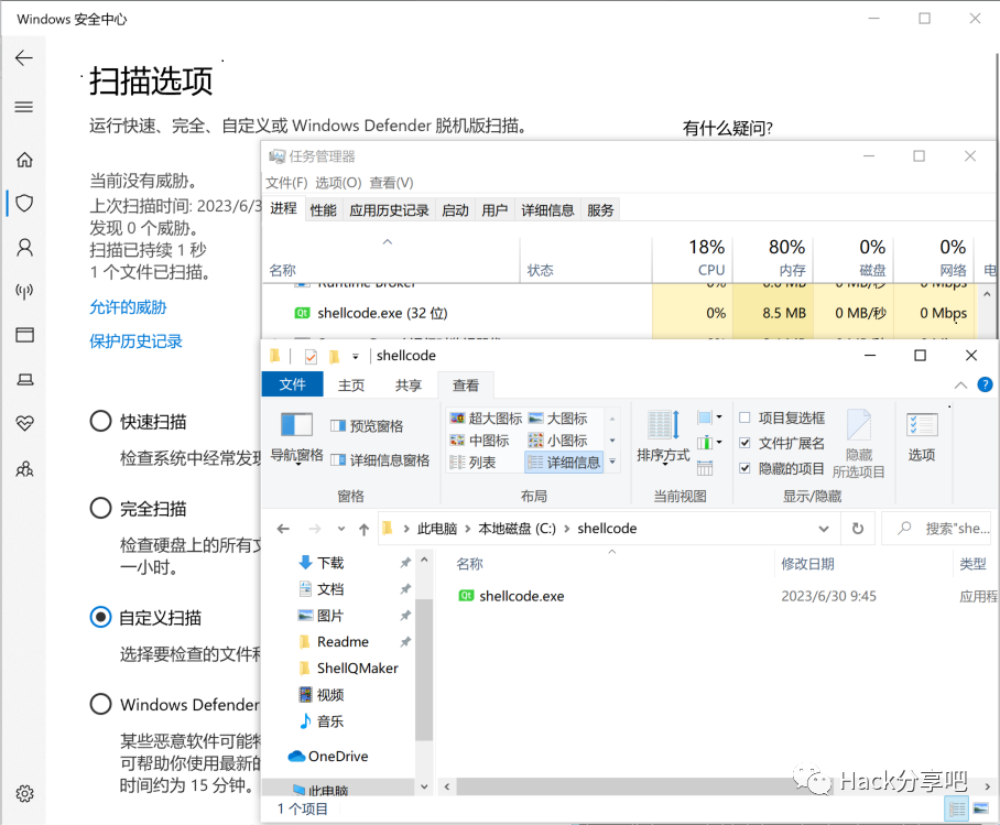 ShellQMaker (你的shellcode) (生成的可执行文件)Microsoft Defender