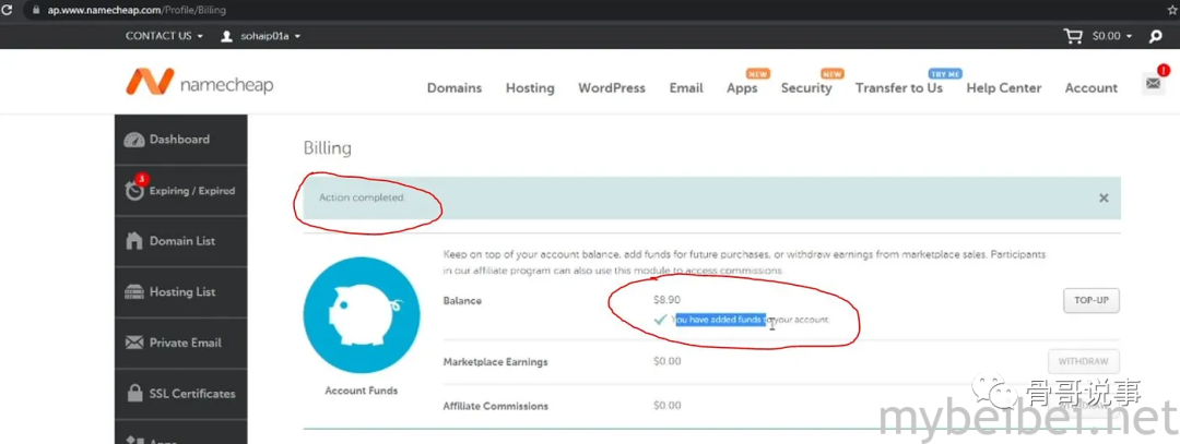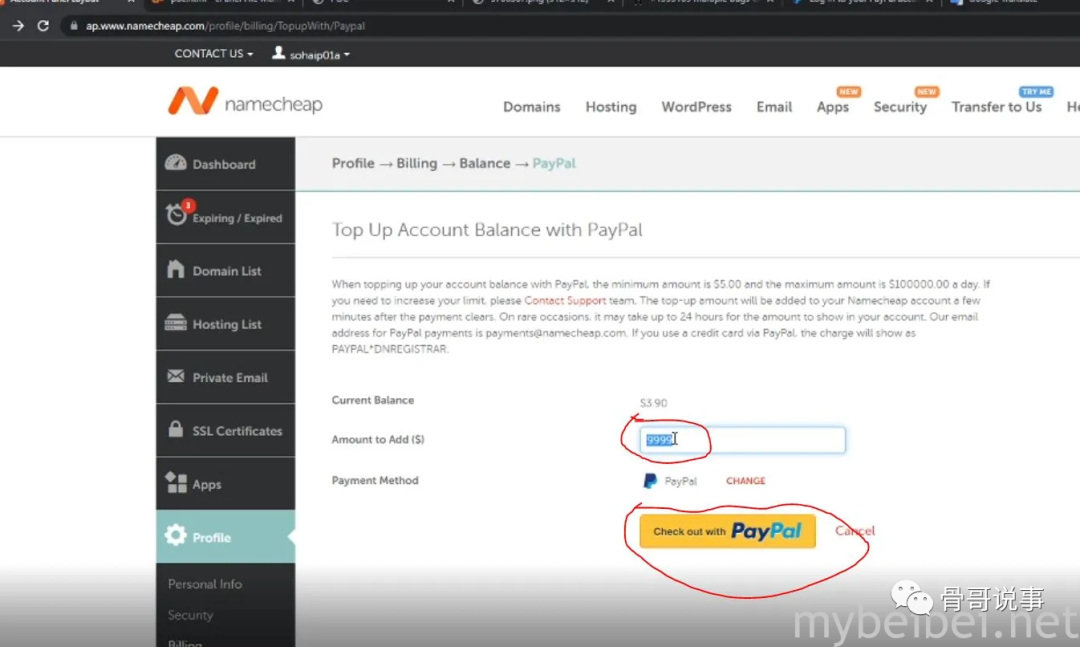 打开 https://ap.www.namecheap.com/Profile/Billing