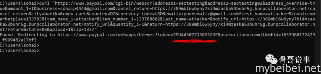 通过上面链接,将 business 更改为攻击者 Paypal 电子邮件,将 return 和 notify_url 更改为攻击者的主机以接收 HTTP 请求,以及 amount_1 为从受害者的帐户中窃取的具体金额!