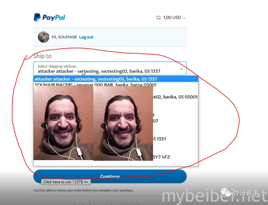 当受害者一旦点击了它,就会将钱汇到攻击者的PayPal账户,同时,攻击者的地址也将被设置为默认账单地址。