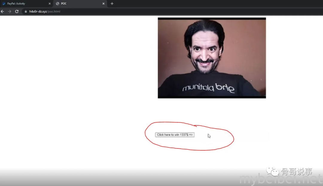 攻击者能够在 Iframe 中加载敏感的 paypal.com 端点,当攻击者点击“near to click here”时,就会购买一些东西。