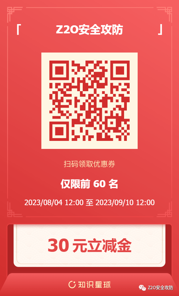关注公众号回复“加群”,添加Z2OBot好友,自动拉你加入Z2O安全攻防交流群(微信群)分享更多好东西。
