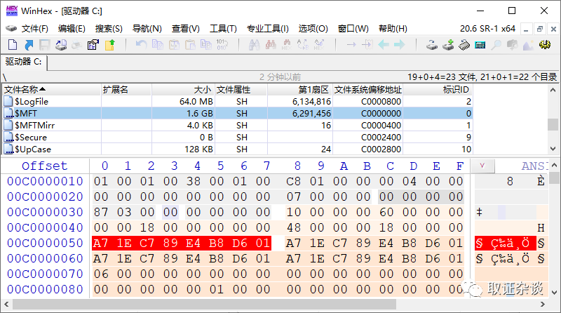 这学期初,给学生们出了一道课后练习题,让同学们巩固课堂上学习的进制转换、字节序、数字时间、WinHex & X-Ways Forensics相关的知识。以管理员权限打开WinHex,加载C盘,找到$MFT文件,该文件的0x50至0x6F之间有4个filetime时间戳,他们是小端字节序存储的。请尝试解析第一个时间戳到类似“2023-03-14 09:00:00”的格式,请写出详细的操作步骤并附上各环节必要的截图。