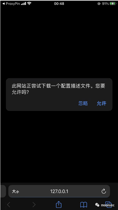 proxypin作者项目地址:https://github.com/wanghongenpin/network_proxy_flutter注意:iOS美版香港AppStore下载地址或直接搜ProxyPin(推荐):https://apps.apple.com/app/proxypin/id6450932949一、iOS端环境配置1、我们在ios端安装好Proxypin后需要先配置证书环境,打开右下角代理,并且允许“ProxyPin”添加VPN配置