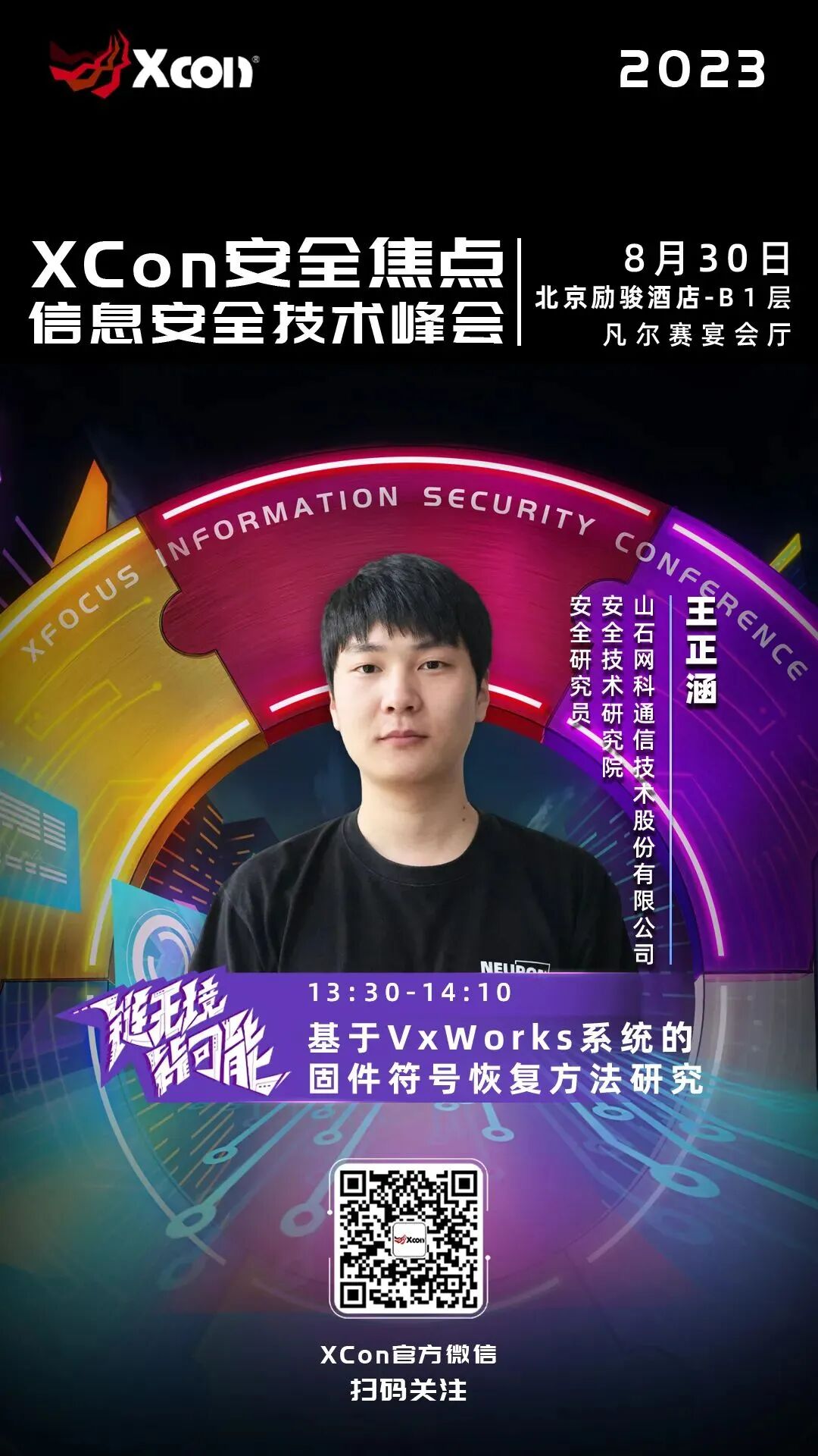 本届XCon2023大会中,来自山石网科通信技术股份有限公司安全技术研究院的安全研究员王正涵将带来《基于VxWorks系统的固件符号恢复方法研究》的议题分享,旨在基于研究VxWorks漏洞挖掘的目的,对无符号静态编译的VxWorks固件系统进行深入研究,探索通用的固件分析方法和工具。