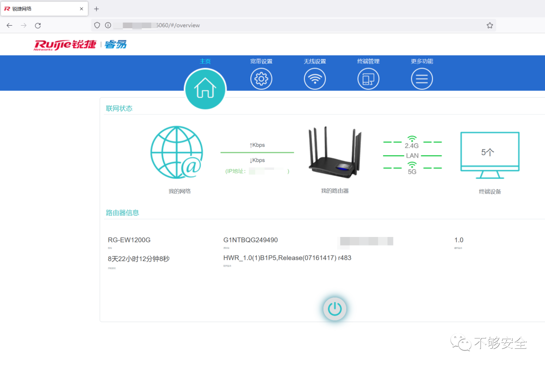 锐捷网络RG-EW1200G HWR_1.0(1)B1P5,Release(07161417) r483存在任意密码修改漏洞,允许未授权用户修改管理员密码、登录路由器、获取敏感信息、控制内部网络。