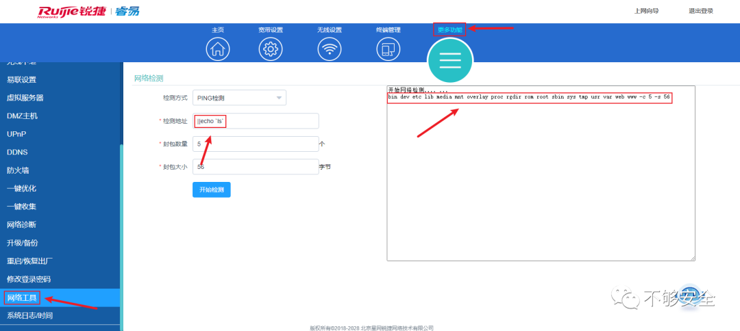 RG-EW1200G管理界面ping检测功能中的命令执行漏洞。