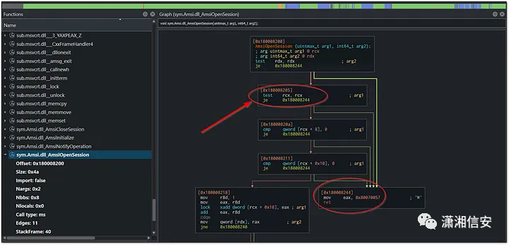 让我们首先反汇编 AmsiOpenSession 函数amsi.dll:
