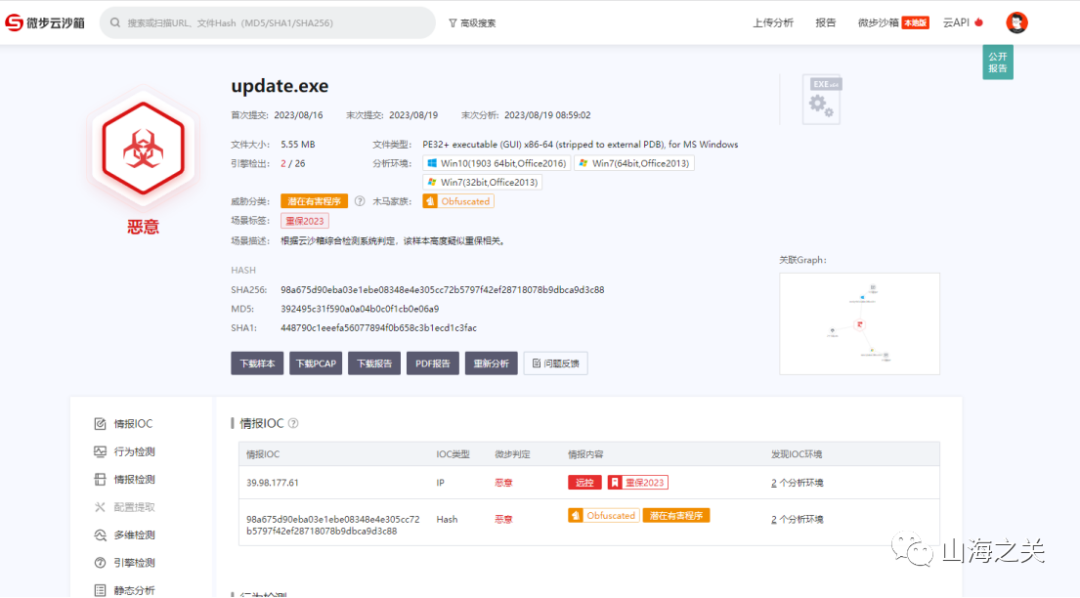 https://s.threatbook.com/report/file/98a675d90eba03e1ebe08348e4e305cc72b5797f42ef28718078b9dbca9d3c88样本分析
