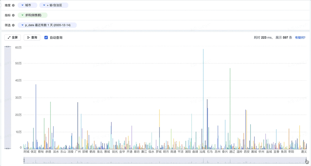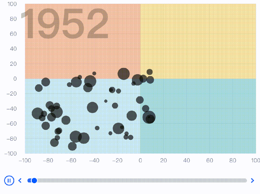 VisActor也可以通过动态图表和动画等功能进行独立叙事。例如用带有自动播放进度条的图表表示数据随时间迁移: