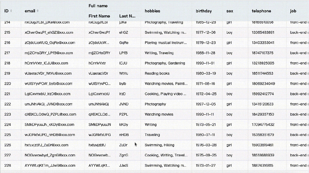 VTable 支持大数据量的秒级渲染,能够快速展示庞大的数据内容。即使面对百万级数据,VTable 也能提供高效的渲染以及自由的交互体验: