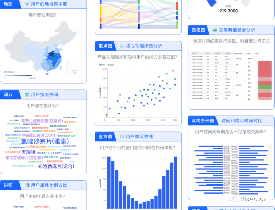 VisActor作为一款免费开源可视化解决方案,经过火山引擎海量真实用户场景的验证和打磨。在功能性、美观性、性能、跨端支持度上都做到了非常好的效果,能够很好的助力业务实现可视化能力的增强和落地。