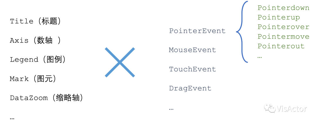 如以上接口所示:通过query参数锁定发生交互的组件,通过event明确交互事件的类型。根据以上接口即可获得用户在图表上进行的具体交互行为。详细设置参考VisActor事件介绍:https://visactor.io/vchart/api/API/event。