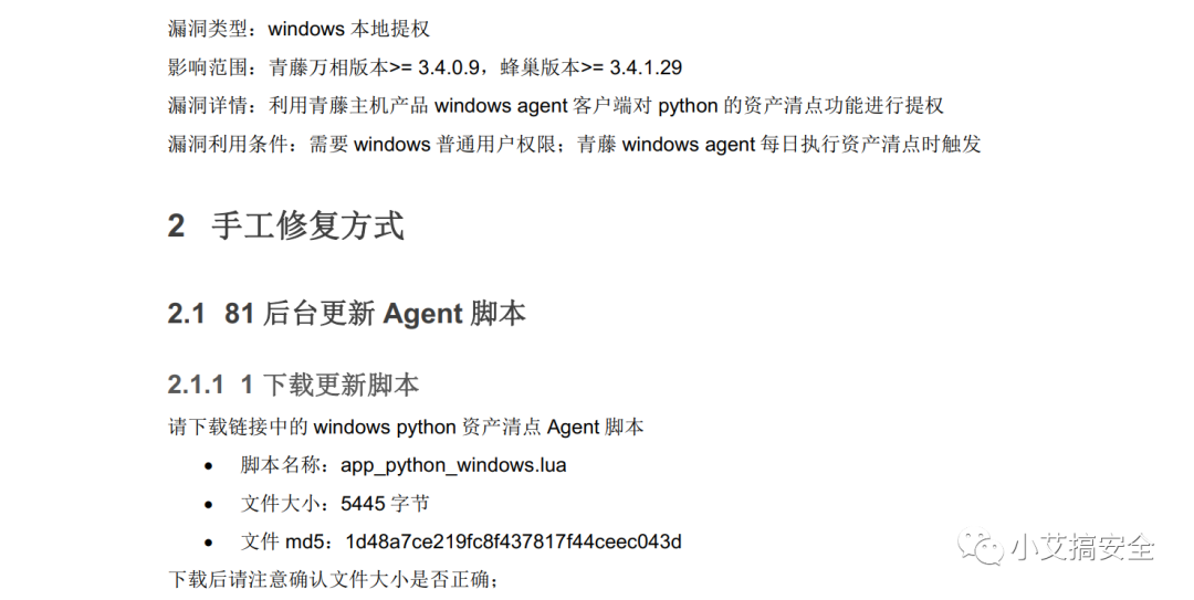 漏洞利用条件:需要 windows 普通用户权限;青藤 windows agent 每日执行资产清点时触发上述漏洞信息pdf文档感兴趣的小伙伴联系文末小助手回复”HW2“加群领取!