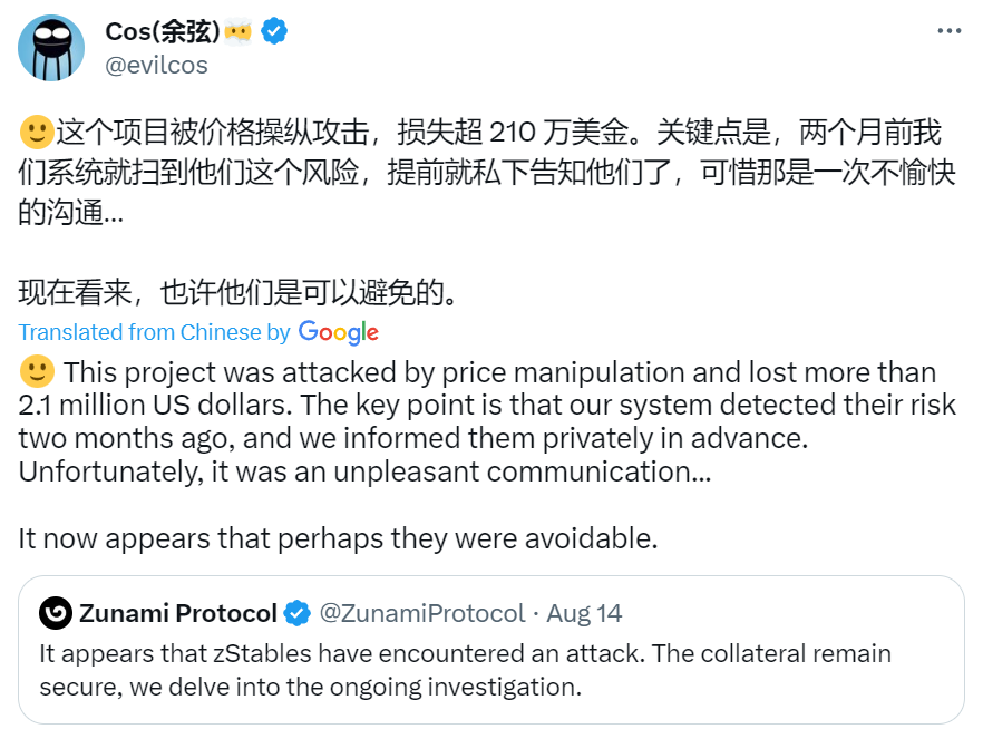 值得一提的是,此前我们的系统扫到了该漏洞,我们也善意提醒其出现漏洞,但项目方没有重视,等到事件发生了已为时已晚。