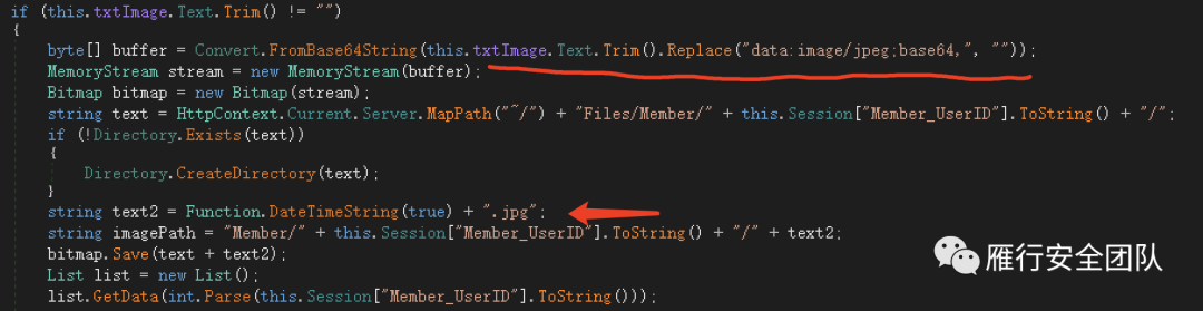 前台上传是先将图片内容转成base64形式的数据流,重新在服务器上生成文件然后固定添加jpg后缀。那这样前台就莫得搞头了。