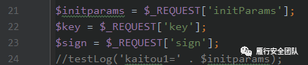 继续往上看$paramArr,在83行进行处理并赋值,通过$initparams处理后得到,与上方$requestObj同理。