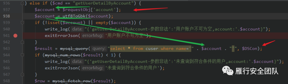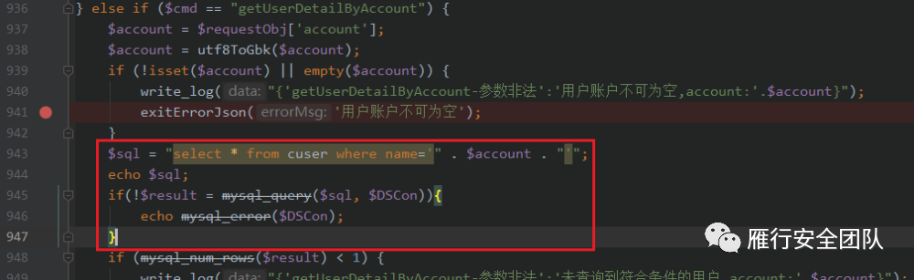 就随便找个了利用点,让 $cmd=getUserDetailByAccount,与上方前半段手法一样不赘述了。