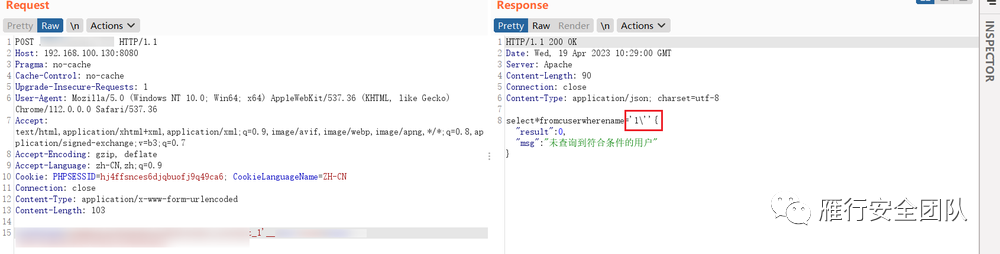 构造请求包,让$cmd等于createUser,通过了if判断,离注入就剩几行了。