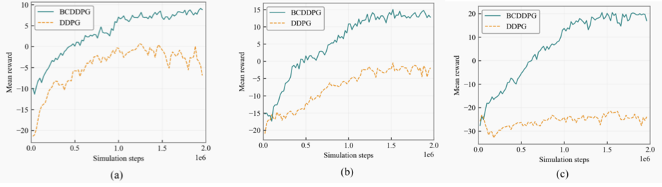 3)进行了大量的模拟实验来评估BCDDPG算法的性能。实验结果表明,与现有方法相比,BCDDPG算法在平均奖励、到达率和碰撞率等方面表现更优。