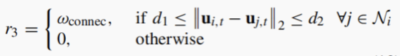 3)无人机i在时间步长t与邻居合作的正奖励定义为