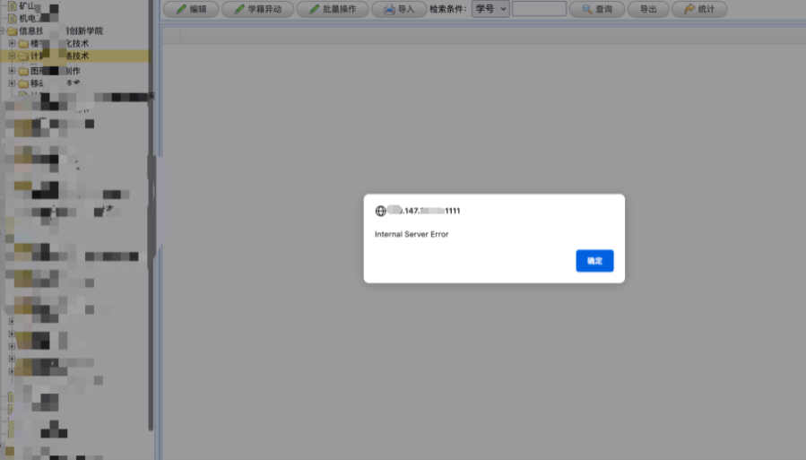 发现500报错了,可能是没有权限,或者数据过大产生的服务器报错?