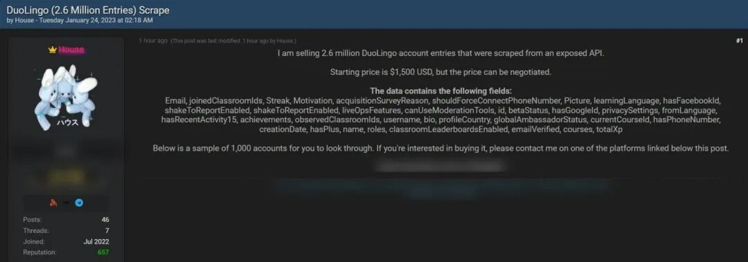 IT之家 8 月 26 日消息,近日有黑客在暗网论坛上兜售 260 万多邻国用户数据,其中包含用户账号名称、真实姓名、电子邮件地址等相关内部数据。