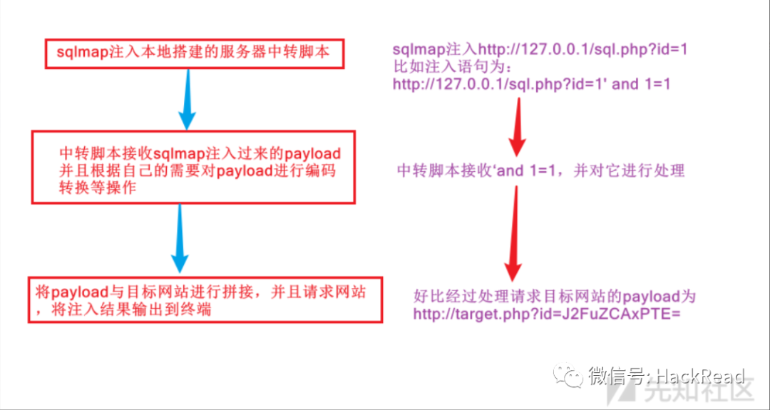 首先我们我们来分析一下sqlmap中转注入的原理,如下图: