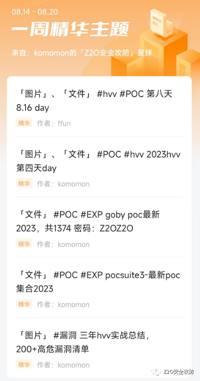 涉及方向包括Web渗透、免杀绕过、内网攻防、代码审计、应急响应、云安全。星球中已发布 300+ 安全资源,针对网络安全成员的普遍水平,并为星友提供了教程、工具、POC&EXP以及各种学习笔记等等。(点我了解详情)