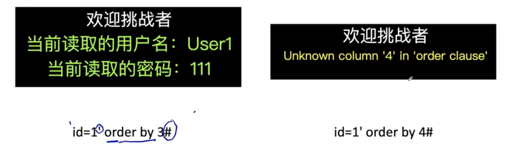union连接两个select,让两个语句同时执行,但需要左边的列数与右边的列数相等union select才能正确执行