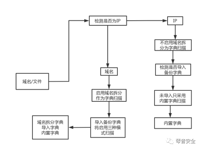 可支持三种模式检测,包括:(1)域名拆分作为字典;(2)内置字典扫描;(3)可导入字典扫描.
